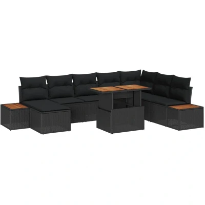 vidaXL Garden Sofa Set with Storage 9 pcs Black Poly rattan
