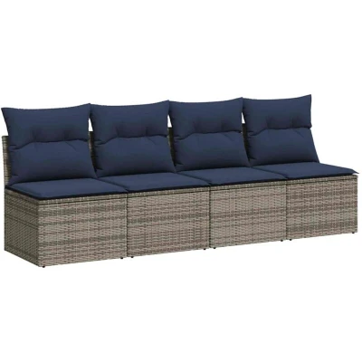 vidaXL Garden Sofa with Cushion Grey 220 x 62 69cm Poly Rattan