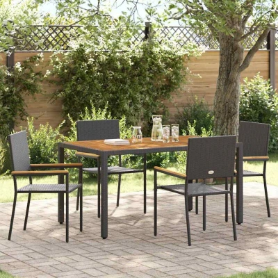 ManoManoGeneral description The Modern Garden Stacking Chairs are a fantastic addition to any outdoor space, such as a garden or terrace. With their sleek and tidy design, they look stylish and are highly practical for outdoor seating. These chairs enhance your outdoor area, whether you're hosting a summer gathering or enjoying a quiet moment, and their appealing style complements various outdoor aesthetics. Technical specifications Colour: Black and brown Material: PE rattan, solid acacia wood Overall dimensions: 54 x 56 x 90 cm (L x W x H) Seat depth: 49.0 cm Max weight: 111 kg Assembly required: Yes Delivery contains: 4 x Garden Chair EAN: 8721359329094 SKU: 3403061 Brand: vidaXL Other information