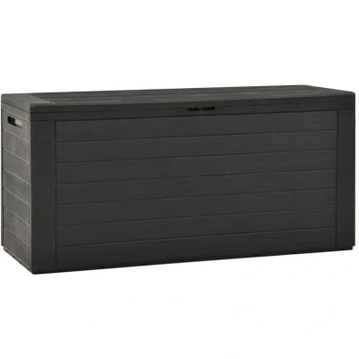 General description This stylish storage box is an ideal solution for decluttering your garden, patio, or terrace. The spacious garden box is perfect for storing cushions, pillows, blankets, toys, and other items. It can also serve as a toolbox thanks to its solid construction. Made of sturdy, durable polypropylene (PP), this storage chest is suitable for both indoor and outdoor use. Its understated yet timeless design will blend seamlessly into any decor. This item is easy to assemble. Technical specifications Colour: Anthracite Material: Polypropylene (PP) Dimensions: 116 x 44 x 55 cm (W x D x H) Capacity: 290 L Lockable (lock is not included) Assembly required: Yes Other information