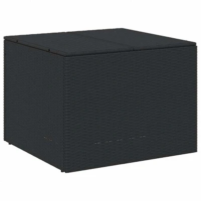 ManoManoGeneral description This garden storage box is perfect for storing cushions, pillows, blankets, and other items in your garden or on the patio. Made from durable PE rattan, also known as poly rattan, it offers a strong and low-maintenance solution that resembles natural rattan. Its lightweight and weather-resistant properties make it an ideal choice for outdoor furniture. Technical specifications Colour: Black Material: PE rattan, powder-coated steel Overall dimensions: 80 x 75 x 59 cm (W x D x H) Inner dimensions: 76 x 71 x 54 cm (W x D x H) Height (open): 132 cm Includes a removable, water-resistant bag UV-resistant Assembly required: Yes Other information To maintain the beauty of your outdoor furniture, it is recommended to protect it with a waterproof cover.
