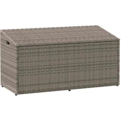 ManoManoGeneral description This garden storage box is perfect for keeping your outdoor furniture cushions, gardening supplies, pool towels, and other items organized and easily accessible. Technical specifications Colour: Grey Material: PE rattan, powder-coated steel Outer dimensions: 110 x 50 x 58 cm (L x W x H) Inner dimensions: 105 x 46 x 52 cm (L x W x H) Bag dimensions: 105 x 46 x 50 cm (L x W x H) Maximum height: 58 cm Includes a removable, water-resistant bag UV-resistant Water-resistant Assembly required: Yes Usage Ideal for storing cushions, toys, and other outdoor items. To maintain the appearance of your outdoor furniture, it is recommended to use a waterproof cover. Other information