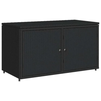 ManoManoGeneral description This garden storage cabinet is perfect for keeping your outdoor furniture cushions, gardening supplies, pool towels, and other items organized and easily accessible. Technical specifications Colour: Black Material: PE rattan, powder-coated steel, stainless steel Dimensions: 110 x 55 x 60.5 cm (W x D x H) Max. loading capacity (per shelf): 15 kg Assembly required: Yes Installation To prevent it from being overturned, this product must be used with the provided wall attachment device. Usage Ideal for storing garden tools, pool toys, outdoor cushions, and more. To maintain the appearance of your outdoor furniture, it is recommended to protect it with a waterproof cover. Other information