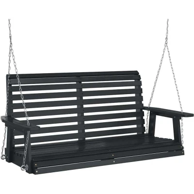 This garden swing bench is an ideal addition to your backyard, porch, patio, garden, or even at the park. It provides a perfect spot to enjoy a sunny day with the whole family. Weather-resistant and long-lasting: This garden swing bench is crafted from solid fir wood with a painted surface, ensuring durability, longevity, and exceptional weather resistance, making it an ideal choice for outdoor use.Sturdy and adjustable chains: This outdoor swing bench comes with 2 sturdy metal chains, ensuring high safety while swinging. Additionally, the hanging height can be adjusted to fit users of different heights.Ergonomic design: This porch swing has a high ergonomic backrest that contours to your back, providing optimal support. The wide armrests provide extra support for your arms, while the spacious seating area ensures a comfortable and enjoyable sitting experience.Good ventilation: The slatted design ensures air circulation and prevents sultry heat.Wide application: This porch swing can be a striking addition to any indoor or outdoor space, such as the garden, patio, porch, balcony, park, etc. You can install it on the swing stand (not included), on the ceiling or on the tree (requires fixing hanging trays, not included). Good to know:This product is not suitable for use in bad weather conditions such as strong wind, heavy rain, snow, storms, etc.