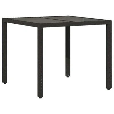 vidaXL Garden Table with Glass Top Black 90x90x75 cm Poly Rattan