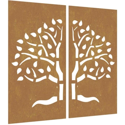 vidaXL Garden Wall Decorations 2 pcs 105x55 cm Corten Steel Tree Design