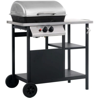 vidaXL Gas BBQ Grill with 3 layer Side Table Black and Silver