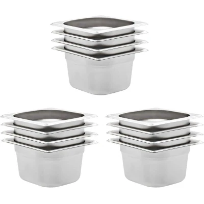 VidaXLThese stackable Gastronorm containers will be great additions to your kitchenware. Made of strong stainless steel, the steam table pan has a solid construction and is easy to clean. The hardwearing material makes it scratch-free and easy to maintain. The food pan features the standard Gastronorm dimensions, thus allowing universal use and a wide range of combinations. Consequently, it fits perfectly in all your professional kitchen cabinets and equipment like bain-marie, chafing dishes and salad bars. The cookware is stackable and can be hidden away to save space, therefore it is very practical and ideal for using in restaurants, hotels, parties, as well as at home. Delivery includes 12 pans.