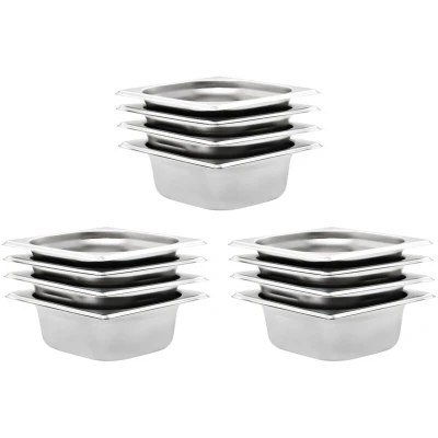 VidaXLThese stackable Gastronorm containers will be great additions to your kitchenware. Made of strong stainless steel, the steam table pan has a solid construction and is easy to clean. The hardwearing material makes it scratch-free and easy to maintain. The food pan features the standard Gastronorm dimensions, thus allowing universal use and a wide range of combinations. Consequently, it fits perfectly in all your professional kitchen cabinets and equipment like bain-marie, chafing dishes and salad bars. The cookware is stackable and can be hidden away to save space, therefore it is very practical and ideal for using in restaurants, hotels, parties, as well as at home. Delivery includes 12 pans.