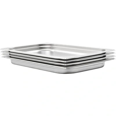 VidaXLThese stackable Gastronorm containers will be great additions to your kitchenware. Made of strong stainless steel, the steam table pan has a solid construction and is easy to clean.The hardwearing material makes it scratch-free and easy to maintain. The food pan features the standard Gastronorm dimensions, thus allowing universal use and a wide range of combinations. Consequently, it fits perfectly in all your professional kitchen cabinets and equipment like bain-marie, chafing dishes and salad bars. The cookware is stackable and can be hidden away to save space, therefore it is very practical and ideal for using in restaurants, hotels, parties, as well as at home. Delivery includes 4 pans.
