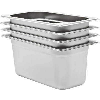 VidaXLThese stackable Gastronorm containers will be great additions to your kitchenware. Made of strong stainless steel, the steam table pan has a solid construction and is easy to clean. The hardwearing material makes it scratch-free and easy to maintain. The food pan features the standard Gastronorm dimensions, thus allowing universal use and a wide range of combinations. Consequently, it fits perfectly in all your professional kitchen cabinets and equipment like bain-marie, chafing dishes and salad bars. The cookware is stackable and can be hidden away to save space, therefore it is very practical and ideal for using in restaurants, hotels, parties, as well as at home. Delivery includes 4 pans.