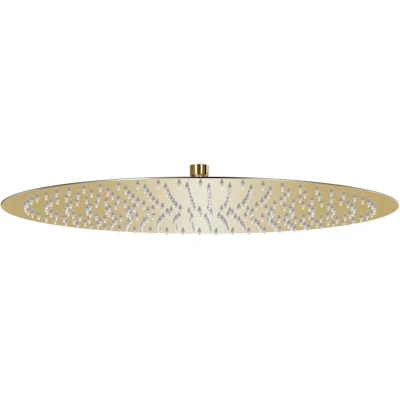 General description This shower head makes a great addition to any bathroom. It is equipped with a large number of nozzles, which scatter the water over a wide area for a truly relaxing rain shower experience. The silicone nozzles ensure that any limescale deposits are always easy to clean, and the swivel joint allows you to adjust the spray angle. Technical specifications Colour: Gold Material: Stainless steel, silicone Diameter: 50 cm Shape: Round Anti-limescale nozzles Number of nozzles: 288 Can be wall or ceiling mounted Other information
