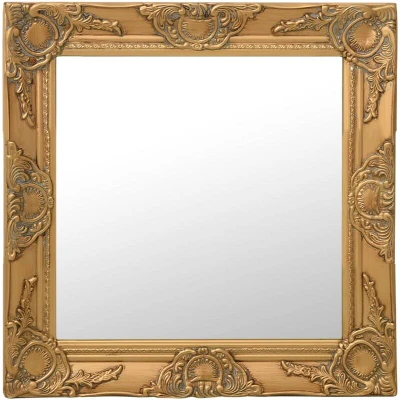 vidaXL Gold Wall Mirror Square Wooden Frame Baroque Style Bevelled Edge for Bedroom, Living Room, Dressing Office 50x50 cm