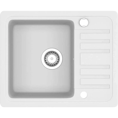 General description Our granite kitchen sink is a user-friendly and timeless addition to your kitchen decor. It features a single, extra-deep basin and a sleek design. The high-quality granite makes the sink exceedingly heat resistant, scratch and impact resistant, as well as easy to clean. Additionally, it is fully reversible, allowing for installation on both the right and left sides. A basket strainer is included for easy debris removal. Technical specifications Colour: White Material: 80% quartz and 20% resin Overall dimensions: 575 x 460 x 280 mm (L x W x D) Basin dimensions: 320 x 390 x 190 mm (L x W x D) Minimum base unit width: 450 mm Installation type: Overmount Heat resistant up to 280 °C Stain- and scratch resistant Basket strainer included Easy to assemble Other information Children should be supervised to ensure that they do not play with the appliance. Keep children away from the assembly area. Attention: Reading the instructions carefully before use and keep it for