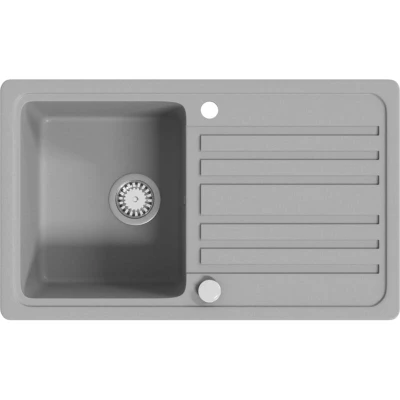 General description This contemporary granite kitchen sink with drainer features a clean, sleek design, making it a versatile addition to your kitchen. Made of high-quality granite, it is scratch and impact-resistant, highly durable, dirt-repellent, and stain-resistant, ensuring easy cleaning. The sink is heat-resistant up to 280 °C and is designed to save space, providing more counter space. The side drainer offers extra space for dishes, and the sink is fully reversible, allowing for installation on either side of the basin. A hole cover is included to cover any extra sink holes, along with a basket strainer waste kit for easy debris removal. Technical specifications Colour: Grey Material: 80% quartz and 20% resin Overall size: 765 x 460 mm (L x W) Cut-out size: 745 x 440 mm (L x W) Basin dimensions: 320 x 390 x 190 mm (L x W x D) Minimum base unit: 450 mm Installation type: Overmount Left/right-mountable (fully reversible) Heat resistant up to 280 °C Stain- and scratch-resistant