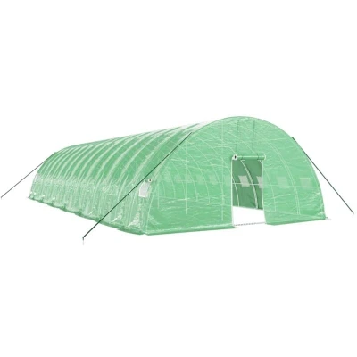VidaXLThis spacious greenhouse can accommodate a considerable number of fruits, vegetables and plants. It is ideal for protecting your plants from adverse weather conditions. Durable PE cover: Polyethylene (PE) is the most widely used plastic material. It is UV-resistant, weather-resistant, anti-tear, lightweight, and easy to maintain. It also protects your plants against the damage from birds while offering heat preservation.Sturdy frame: Steel is an exceptionally hard and strong material. It offers sturdiness and stability. Galvanisation provides better protection against corrosion and is useful for products that'll be used outdoors as well as in harsh environments.Practical design: The plant house is designed for easy access and optimized air circulation thanks to its zippered roll-up door and 4 side roll-up mesh windows. Good to know:We recommend adding the foundation for added sturdiness. The roof of the greenhouse cannot withstand heavy snowfall.