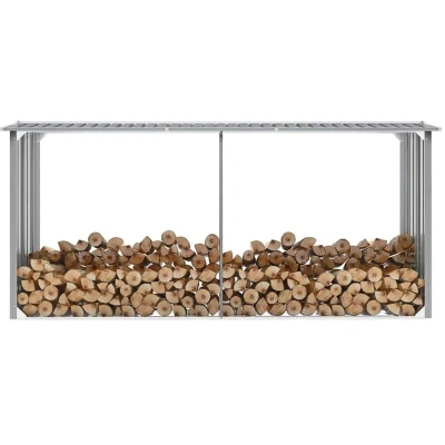 vidaXL Grey Garden Log Storage Shed Durable Galvanised Steel Weather Resistant Design Easy to Assemble Dimensions: 330x92x153 cm