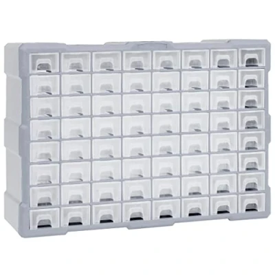 vidaXL Grey High Impact Multi Drawer Organiser 64 Plastic Crafts and Tools Storage Unit Wall Mountable