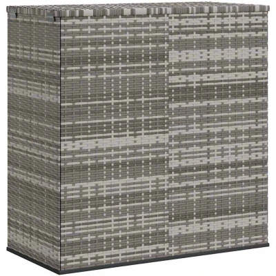 vidaXL Grey PE Rattan Garden Cushion Storage Box Powder Coated Steel Frame, Included Black Inner Bag, Gas Lift Mechanism, Weather & Water Resistant, Outdoor Indoor Use Dimensions: 100x49x...