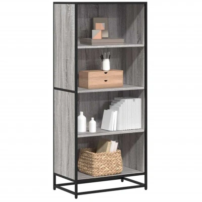vidaXL grey sonoma bookcase/bookshelf engineered wood & metal, freestanding 4 compartments, stable/durable, for office/bedroom/living room
