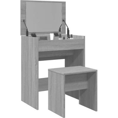 vidaXL Grey Sonoma Dressing Table & Stool Engineered Wood Makeup Vanity with Ample Storage and Integrated Mirror for Bedroom