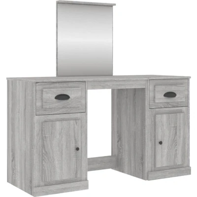 vidaXL Grey Sonoma Dressing Table with Mirror Functional & Elegant Design Durable, Moisture resistant Engineered Wood Makeup Vanity Desk Ample Storage Space
