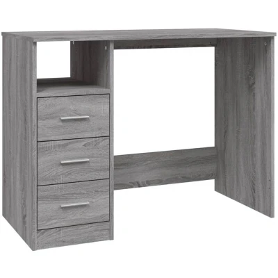 vidaXL Grey Sonoma Engineered Wood Desk with Drawers Modern Standing Writing Ample Storage Compartment Ideal for Small Office Spaces, Dorm Rooms