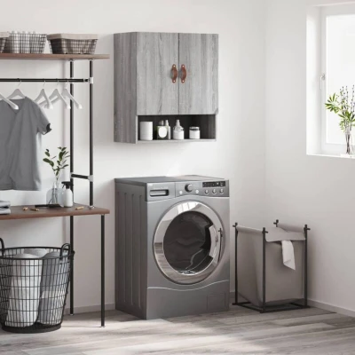 vidaXL Grey Sonoma Engineered Wood Wall Cabinet Modern Style Floating mounted 60x31x70 cm Storage Unit for Living Room