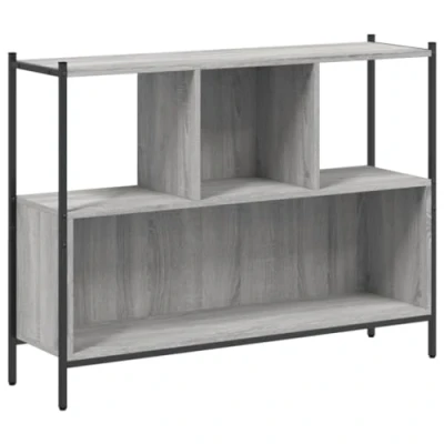 vidaXL Grey Sonoma Modern Bookcase Freestanding Shelving Unit Engineered Wood and Powder Coated Steel Ideal for Living Room, Bedroom, Study, Basement