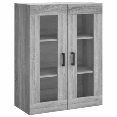 ManoManoGeneral description This wall-mounted cabinet features an elegant design that adds a timeless touch to your interior decor. Made from high-quality engineered wood, it is both sturdy and durable, offering a smooth surface with strength, stability, and moisture resistance. Technical specifications Colour: Grey sonoma Material: Engineered wood, glass Dimensions: 69.5 x 34 x 90 cm (W x D x H) Assembly required: Yes Compatibility and accessories Screws and plugs for wall mounting are not included; it is recommended to use screws and plugs suitable for your specific wall type. Installation Follow the provided instructions carefully for installation. Consult a professional if you are unsure about the mounting process. Usage The cabinet offers ample storage space for organizing daily essentials. It can be hung on the wall to save floor space or placed on top of a sideboard to create a highboard. Belongings are visible behind the glass door while being protected from dust, and the handles