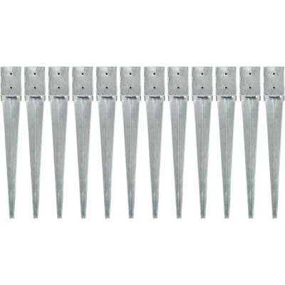 vidaXL Ground Spikes 12 pcs Silver 10x10x76 cm Galvanised Steel