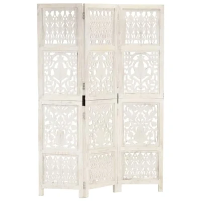 vidaXL Hand carved 3 Panel Room Divider White 120x165 cm Solid Mango Wood