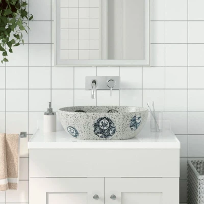 VidaXLThis countertop basin is a chic and timeless addition to any bathroom, washroom or powder room. Durable material: The bathroom sink, made of ceramic, has a durable surface that resists impacts, stains, and scratches, ensuring its long-lasting shine.Eye-catching patterns: This wash basin has exquisite patterns that bring a vintage, minimalist elegance and glamour, instantly refreshing your bathroom.Easy to clean: To maintain the beauty of the vanity basin, simply wipe its surface with a damp cloth. Good to know:Due to being handmade, the product may have a slightly uneven colour or an asymmetrical pattern, which makes each item unique. The delivery is random, ensuring exclusivity and individuality. Additionally, the size may vary within a 2-3 cm tolerance.