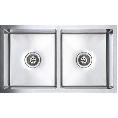 General description Enjoy the advantage of our high-end sink with clean contemporary designs. The bowls in silky smooth satin finish will ooze class and sophistication, fitting any kitchen decor. This double bowl sink is crafted from high-graded handmade stainless steel with anti-condensation paint, making it mould proof, lead free, and corrosion resistant. It features soundproofing with sound-reduction pads and a unique X-flume design that facilitates quick flow, preventing standing water in the bottom of the basin. Technical specifications Colour: Silver Material: Stainless steel with brushed finish Overall dimensions: 76 x 44 x 20 cm (L x W x H) Top thickness: 3 mm Extra-deep double basin design Includes sound-reduction pads Lead free and corrosion proof Quick flow with the X-flume design Compatibility and accessories Installation types: undermount, flush mount, and drop in Installation The sink is easy to assemble and can be fitted in various ways according to your preference.