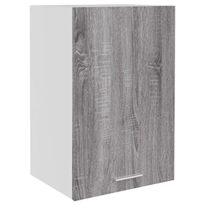 vidaXL Hanging Cabinet in Grey Sonoma Engineered Wood Wall Storage Shelf for Kitchen, Modern 2 Shelves Enclosed Organizer, Moisture Resistant & Easy Clean