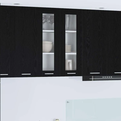 ManoManoGeneral description This modern kitchen wall cabinet is designed to complement contemporary spaces. It features a sleek, rectangular design that enhances the look of your kitchen while providing essential storage solutions. Crafted from high-quality engineered wood, its stain-resistant finish ensures effortless maintenance and adds a touch of sophistication to your cooking area. Technical specifications Material: Engineered wood Colour: Black oak Overall dimensions: 60 x 31 x 80 cm (L x W x H) Weight: 17.9 kg Included Components: Finished back panels and durable board shelves Number of shelves: 3 Number of doors: 2 Indoor / outdoor: Indoor use only Installation Assembly required: Yes Mounting included: Wall / ceiling fixtures - specific screws or wall plugs not included Usage This cabinet is specifically designed for kitchen environments, providing effective storage solutions without compromising on style or space. Its wall-mounted construction saves valuable floor space, making it