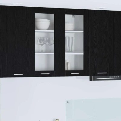 ManoManoGeneral description This modern kitchen wall cabinet is designed to enhance contemporary spaces. With its sleek, rectangular design, it updates the look of your kitchen while providing essential storage solutions. Crafted from high-quality engineered wood, its stain-resistant finish ensures effortless maintenance and adds a touch of sophistication to your cooking area. Technical specifications Material: Engineered wood Colour: Black oak Overall dimensions: 80 x 31 x 80 cm (L x W x H) Weight: 22.4 kg Number of shelves: 3 Number of doors: 2 Compatibility and accessories Indoor use only Mounting included: Wall/ceiling fixtures (specific screws or wall plugs not included) Installation Assembly required: Yes Usage Designed specifically for kitchen environments, this cabinet provides effective storage without compromising on style or space. Other information