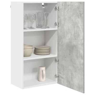 ManoManoGeneral description This modern kitchen wall cabinet in concrete grey and white is designed to enhance contemporary spaces. Its sleek, rectangular design not only updates the look of your kitchen but also provides essential storage solutions. Crafted from high-quality engineered wood, the cabinet features a stain-resistant finish for effortless maintenance while adding sophistication to your cooking area. Technical specifications Material: Engineered wood Overall dimensions: 50 x 31 x 100 cm (L x W x H) Weight: 19.5 kg Color: Concrete grey and white Included Components: Finished back panels and durable board shelves Number of shelves: 3 Door type: 1 hinge door Indoor/Outdoor: Indoor use only Installation Assembly required: Yes Mounting included: Wall/ceiling fixtures (specific screws or wall plugs not included) Usage Recommended for kitchen environments, providing effective storage without compromising on style or space. Easy maintenance: Wipe with a damp cloth regularly to maintain