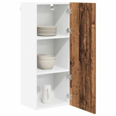 ManoManoGeneral description This modern kitchen wall cabinet is designed to complement contemporary spaces. With its sleek, rectangular design, it updates the look of your kitchen while providing essential storage solutions. Crafted from high-quality engineered wood, its stain-resistant finish ensures effortless maintenance and adds a touch of sophistication to your cooking area. Technical specifications Material: Engineered wood Overall dimensions: 40 x 31 x 100 cm (L x W x H) Weight: 16.6 kg Colour: Old wood Included Components: Finished back panels and durable board shelves Number of shelves: 3 Door type: 1 hinge door Indoor/Outdoor: Indoor use only Assembly required: Yes Usage This cabinet is specifically designed for kitchen environments, providing effective storage solutions without compromising on style or space. Its wall-mounted construction saves valuable floor space, making it ideal for modern lifestyles. Other information