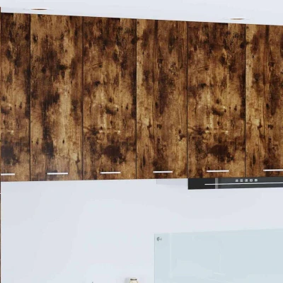 ManoManoGeneral description This modern kitchen wall cabinet is designed to enhance contemporary spaces. With its sleek, rectangular design, it updates the look of your kitchen while providing essential storage solutions. Crafted from high-quality engineered wood, the cabinet features a stain-resistant finish for effortless maintenance, adding a touch of sophistication to your cooking area. Technical specifications Material: Engineered wood Colour: Smoked oak Overall dimensions: 60 x 31 x 80 cm (L x W x H) Weight: 18.7 kg Number of shelves: 3 Number of doors: 2 Compatibility and accessories Indoor use only Mounting included: Wall/ceiling fixtures (specific screws or wall plugs not included) Installation Assembly required: Yes Usage Designed specifically for kitchen environments, providing effective storage without compromising on style or space. Other information