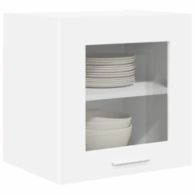 ManoManoGeneral description This modern kitchen wall cabinet perfectly complements contemporary spaces. It features a sleek, rectangular design that updates the look of your kitchen while offering essential storage solutions. Crafted from engineered wood, its stain-resistant finish ensures effortless maintenance while adding a touch of sophistication to your cooking area. Technical specifications Material: Engineered wood Colour: White Overall dimensions: 40 x 31 x 40 cm (L x W x H) Weight: 7.8 kg Includes: 1 x Hanging glass cabinet, 2 shelves, 1 hinge door Indoor use only Assembly required: Yes Compatibility and accessories Mounting included: Wall/ceiling fixtures (specific screws or wall plugs not included) Usage Designed specifically for kitchen environments, this cabinet provides effective storage without compromising on style or space. Other information