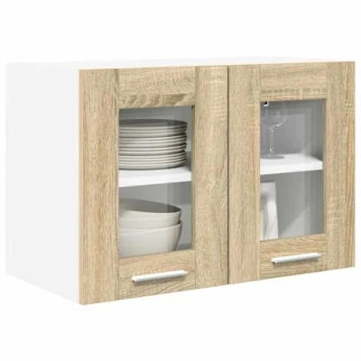 ManoManoGeneral description This modern kitchen wall cabinet is designed to enhance contemporary spaces. With its sleek, rectangular design, it updates the look of your kitchen while providing essential storage solutions. Crafted from high-quality engineered wood, its stain-resistant finish ensures effortless maintenance and adds sophistication to your cooking area. Technical specifications Material: Engineered wood Colour: Sonoma oak Overall dimensions: 60 x 31 x 40 cm (L x W x H) Weight: 22.7 kg Included Components: 2 x Hanging glass cabinet Features: 2 doors, 2 shelves Indoor use only Assembly required: Yes Compatibility and accessories Mounting included: Wall/ceiling fixtures (specific screws or wall plugs not included) Usage Designed specifically for kitchen environments, this cabinet provides effective storage without compromising on style or space. Other information