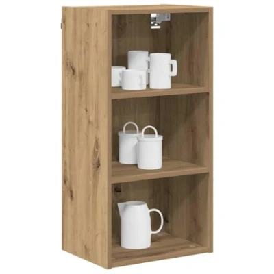 ManoManoGeneral description This modern kitchen wall cabinet is designed to enhance contemporary spaces. With its sleek, rectangular design, it updates the look of your kitchen while providing essential storage solutions. Crafted from high-quality engineered wood, the cabinet features a stain-resistant finish for easy maintenance, adding a touch of sophistication to your cooking area. Technical specifications Material: Engineered wood Colour: Artisan oak Overall dimensions: 40 x 29.5 x 80 cm (L x W x H) Weight: 10.11 kg Included Components: Finished back panels and durable board shelves Number of shelves: 2 Installation Assembly required: Yes Mounting included: Wall/ceiling fixtures (specific screws or wall plugs not included) Usage This cabinet is specifically designed for kitchen environments, providing effective storage solutions without compromising on style or space. Its wall-mounted construction saves valuable floor space, making it ideal for modern lifestyles. Other information