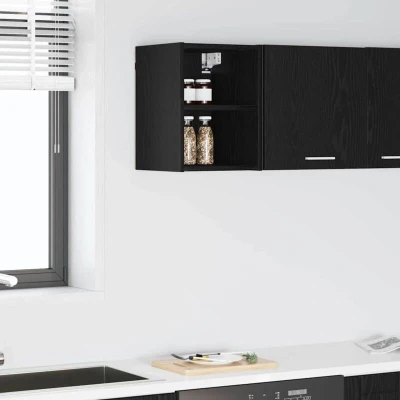 ManoManoGeneral description This modern kitchen wall cabinet in Black Oak is designed to enhance contemporary spaces. Its sleek, rectangular design not only updates the look of your kitchen but also provides essential storage solutions. Crafted from high-quality engineered wood, the cabinet features a stain-resistant finish for easy maintenance while adding sophistication to your cooking area. Technical specifications Material: Engineered wood Overall dimensions: 30 x 29.5 x 40 cm (L x W x H) Weight: 4.7 kg Colour: Black oak Included Components: Finished back panels and durable board shelves Assembly required: Yes Mounting included: Wall/ceiling fixtures (specific screws or wall plugs not included) Usage Designed specifically for kitchen environments, this cabinet provides effective storage without compromising on style or space. Keep your cabinet looking fresh with simple maintenance; wipe with a damp cloth regularly to ensure prolonged beauty and functionality. Other information