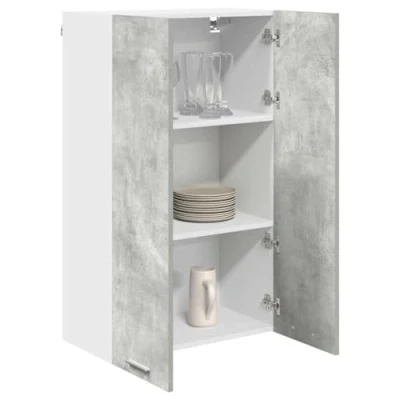 ManoManoGeneral description This modern kitchen wall cabinet in concrete grey is designed to enhance contemporary spaces. Its sleek, rectangular design not only updates the look of your kitchen but also provides essential storage solutions. Crafted from high-quality engineered wood, the cabinet features a stain-resistant finish for easy maintenance while adding a touch of sophistication to your cooking area. Technical specifications Material: Engineered wood Colour: Concrete grey Overall dimensions: 60 x 31 x 100 cm (L x W x H) Weight: 21.9 kg Number of shelves: 3 Number of doors: 2 Indoor use only Included Components 1 x Hanging cabinet Finished back panels Durable board shelves Installation Assembly required: Yes Mounting included: Wall/ceiling fixtures (specific screws or wall plugs not included) Usage This cabinet is specifically designed for kitchen environments, providing effective storage solutions without compromising on style or space. Its wall-mounted construction saves valuable