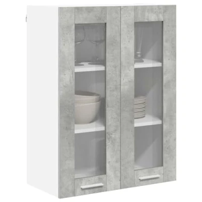 ManoManoGeneral description This modern kitchen wall cabinet is designed to enhance contemporary spaces with its sleek, rectangular design. It offers essential storage solutions while adding a touch of sophistication to your kitchen. Crafted from high-quality engineered wood, this cabinet features a stain-resistant finish for effortless maintenance. Technical specifications Material: Engineered wood Colour: Concrete grey Overall dimensions: 60 x 31 x 80 cm (L x W x H) Weight: 17.9 kg Number of shelves: 3 Number of doors: 2 Compatibility and accessories Indoor use only Mounting included: Wall/ceiling fixtures (specific screws or wall plugs not included) Installation Assembly required: Yes Usage Recommended for kitchen environments, providing effective storage without compromising on style or space. Other information