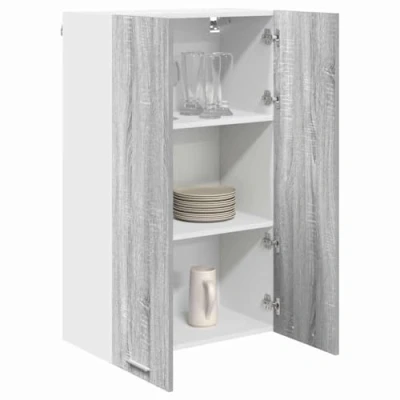 ManoManoGeneral description This modern kitchen wall cabinet is designed to enhance contemporary spaces. With its sleek, rectangular design, it updates the look of your kitchen while providing essential storage solutions. Crafted from high-quality engineered wood, the stain-resistant finish ensures effortless maintenance and adds a touch of sophistication to your cooking area. Technical specifications Material: Engineered wood Colour: Grey sonoma Overall dimensions: 60 x 31 x 100 cm (L x W x H) Weight: 21.9 kg Number of shelves: 3 Number of doors: 2 Compatibility and accessories Indoor use only Mounting included: Wall/ceiling fixtures (specific screws or wall plugs not included) Installation Assembly required: Yes Usage Designed specifically for kitchen environments, providing effective storage without compromising on style or space. Keep your cabinet looking fresh with simple maintenance; wipe with a damp cloth regularly. Other information