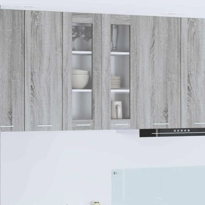 ManoManoGeneral description This modern kitchen wall cabinet perfectly complements contemporary spaces. It features a sleek, rectangular design that can update the look of your kitchen while offering essential storage solutions. Crafted from engineered wood, its stain-resistant finish ensures effortless maintenance while adding a touch of sophistication to your cooking area. Technical specifications Material: Engineered wood Colour: Grey sonoma Overall dimensions: 60 x 31 x 80 cm (L x W x H) Weight: 17.9 kg Frame material: Engineered wood Number of shelves: 3 Number of doors: 2 Indoor use only Included Components 1 x Hanging glass cabinet Wall/ceiling fixtures not included (specific screws or wall plugs) Care & Maintenance Wipe with a damp cloth regularly to maintain its appearance and functionality. Other information