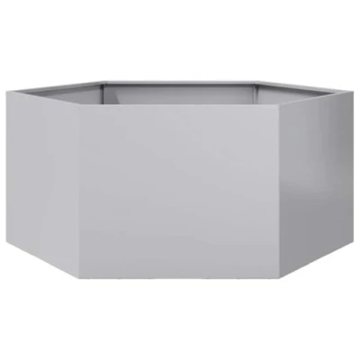 vidaXL Hexagon Garden Planter/Raised Bed Silver Galvanized Steel, Weather Resistant, 104x90x45 cm, Outdoor Flower Pot for Plants, Vegetables, Herbs