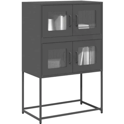 ManoManoGeneral description This highboard combines decorative appeal with practical storage, making it an ideal addition to your home. Technical specifications Colour: Anthracite Material: Cold-rolled steel Dimensions: 68 x 39 x 107 cm (W x D x H) Maximum weight capacity (total): 70 kg With 4 compartments and 4 doors Assembly required: Yes Installation To prevent tipping, this product must be used with the provided wall attachment device. Usage Ample storage space for dining essentials and other household items. The door provides enclosed storage to keep belongings organized and out of sight. Flexible door installation allows the door to be mounted on the left or right side based on personal preference. Practical handles for easy opening and closing of the cabinet. Other information